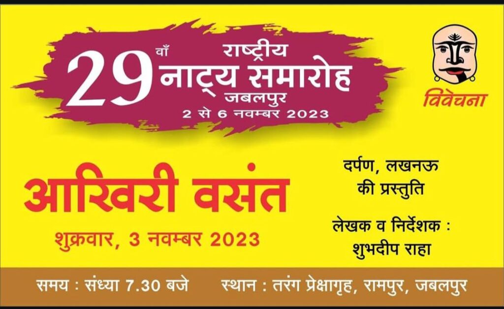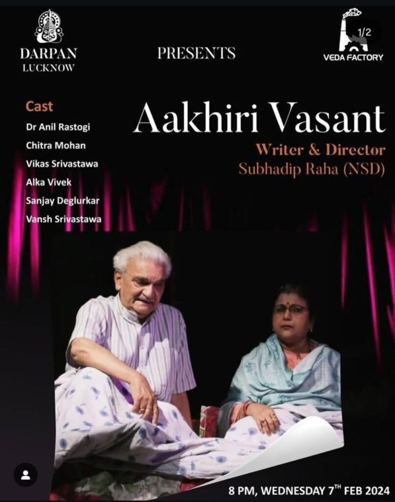 - Plays like Aakhiri Vasant, Swaha, Harishchannar Ki Ladai ( all staged in Bharat Rang Mahotsav of NSD), Panchi Jaa Panchi Aa ( more than 400 shows), Daddy , A View From The Bridge, Inspector General, Yehoodi Ki Ladki, Fando and Lis, Bare Foot in Athens, Andha Yug, Kanyadaan etc staged in different parts of the country.